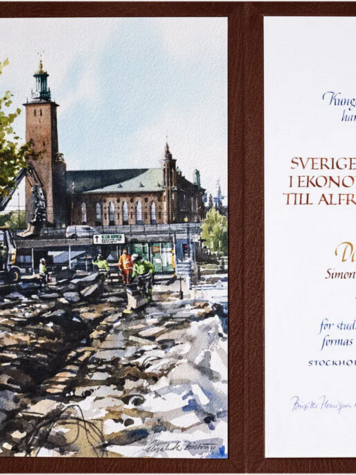 Between 2022-2024 I was commissioned by the Royal Swedish Academy of Sciences to create the artwork for the Nobel Prize Diplomas in Chemistry, Physics and the Economy Prize.*